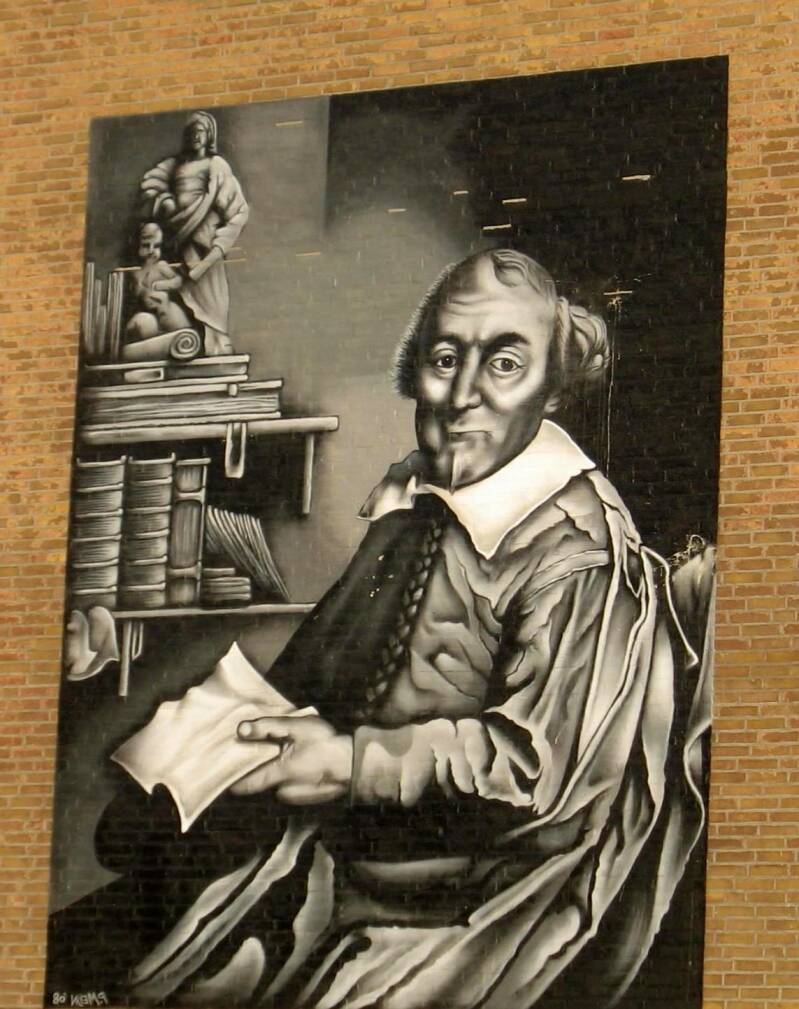 Plantsoen School de Pionier Kerkstraat 52: Bram Vergouw (1913 – 1972), 1969, beton, ca. 1.5 meter. Bram Vergouw was van huis uit metselaar. Maar gaandeweg begon hij steeds meer te beeldhouwen. Hij hakte en sleep in steen, het echte beeldhouwen, maar hij bouwde ook beelden op door eerst een frame van ijzeren staven te maken, met daar omheen steengaas aangesmeerd met slappe beton. Zoals je met gipsverband werkt. Je kunt het verschil zien tussen een gehakt en een 'met beton geboetseerd' beeld. Dit mannetje staat er parmantig bij. Uitdagend, het ene been naar voren, handen in de zij, hoofd naar achteren. Alsof hij zeggen wil: "Kom maar op".