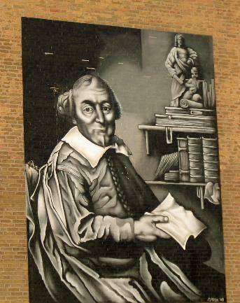 Cor Bruinweg - Achter het appartementencomplex "De Schrijvershof "met de totempalen voor de ingang. De palen stonden voorheen bij de Nicolaasschool deze werd gesloopt in 2007. Er stonden twee betonnen palen voor de ingang van het schoolplein met een voorstelling van de heilige Nicolaas. De palen zijn gemaakt door kunstenaar Arie Teeuwisse. Na de sloop van de school werd de heer Johan van de Meer benaderd om een restauratieklus te doen om de palen een tweede leven te geven.