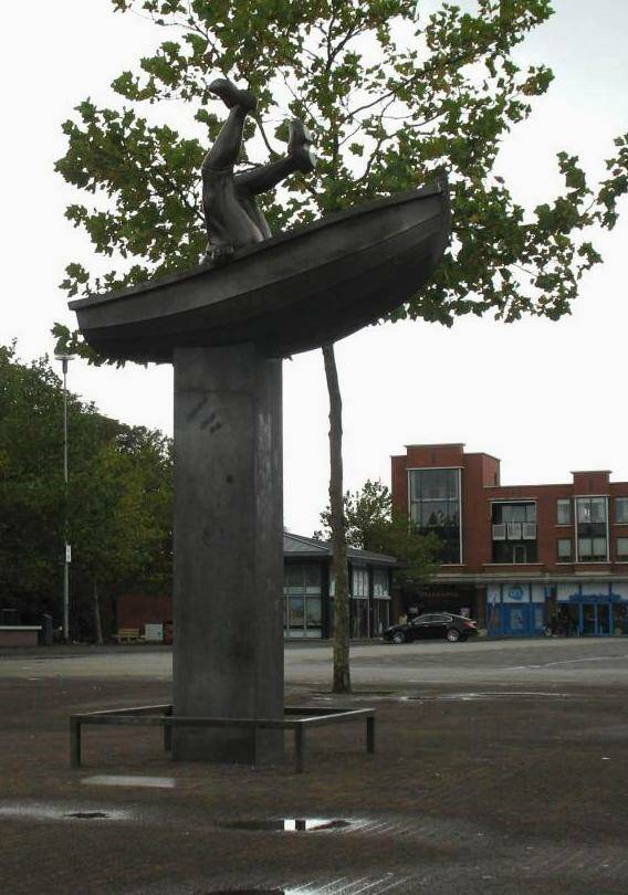 Schoolplein Theo Thijssen, Pieter Kuiperlaan 3 West-Knollendam: Beeldhoudster Loeki Metz.(1918-2004)opleveringsdatum onbekend, brons, ca. 1 meter. Midden op het plein staat dit jochie, een beetje verlegen met zijn rechterbeen in zijn rechterhand. Opgebouwd uit stukjes klei of was, die je nog duidelijk kunt zien. En daarna afgegoten in brons. De houding is zo goed getroffen dat de kunstenaar waarschijnlijk wel iemand als model gehad heeft. Hij is in zijn blootje. Dat vind je misschien wel raar, maar héél veel beelden van mensen zijn naakt. Niet omdat kunstenaars dat nou zo leuk vinden om naar te kijken, maar omdat je een naakt lichaam veel beter in een mooie houding kunt weergeven. En aan een naakt beeld kun je niet zien of iemand arm of rijk is, of in welke tijd hij leefde. Met andere woorden: in een naakt beeld kun je beter gevoelens uitbeelden; trots, verlegenheid, angst, verslagenheid.