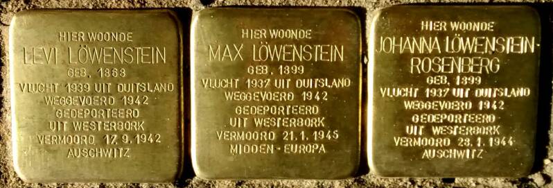 Vier stenen: Vader Bernard 43 jr. werd samen met zijn zoon Aaron 17 jr. op 31-03-1944 vermoord.