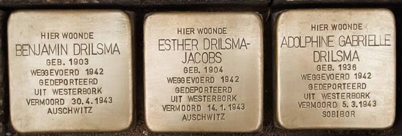 Vier stenen: Abraham Drilsma , hij werd 43 jr. Vermoord op 30-09-1942